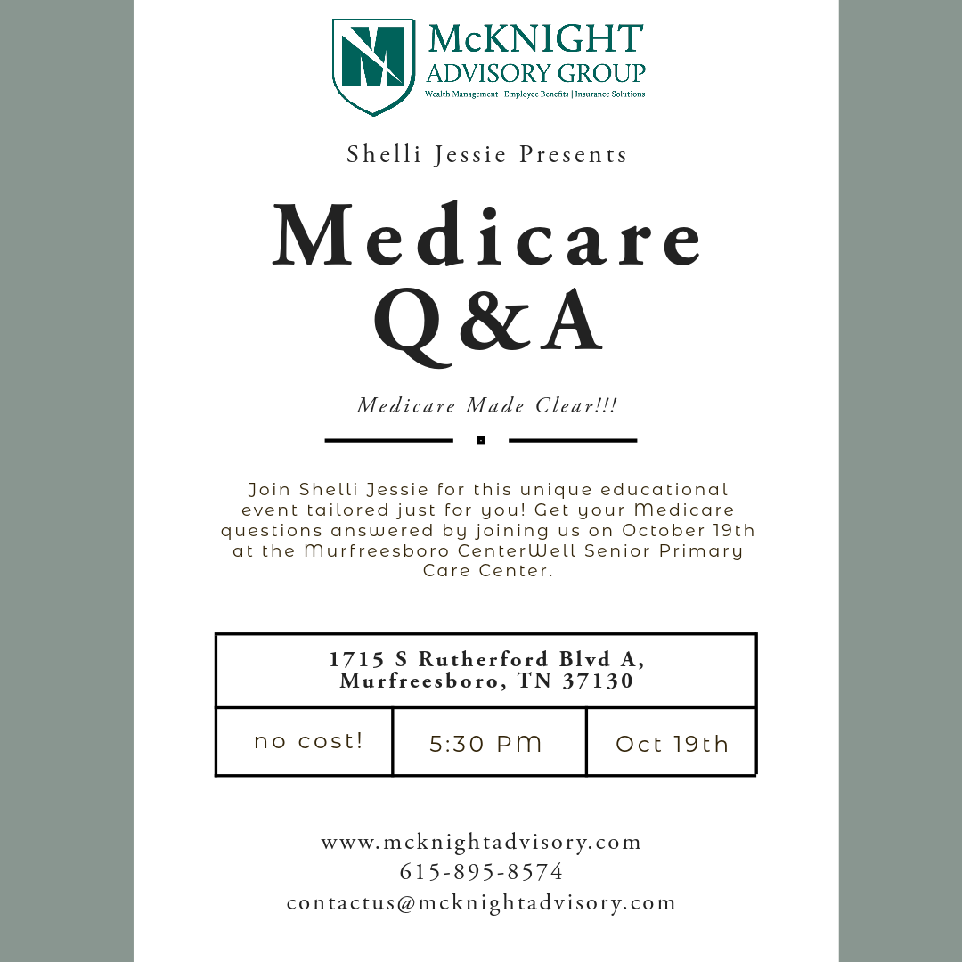 Join Shelli Jessie for this unique educational event tailored just for you! Get your Medicare questions answered by joining us on October 19th at the Murfreesboro CenterWell Senior Primary Care Center.